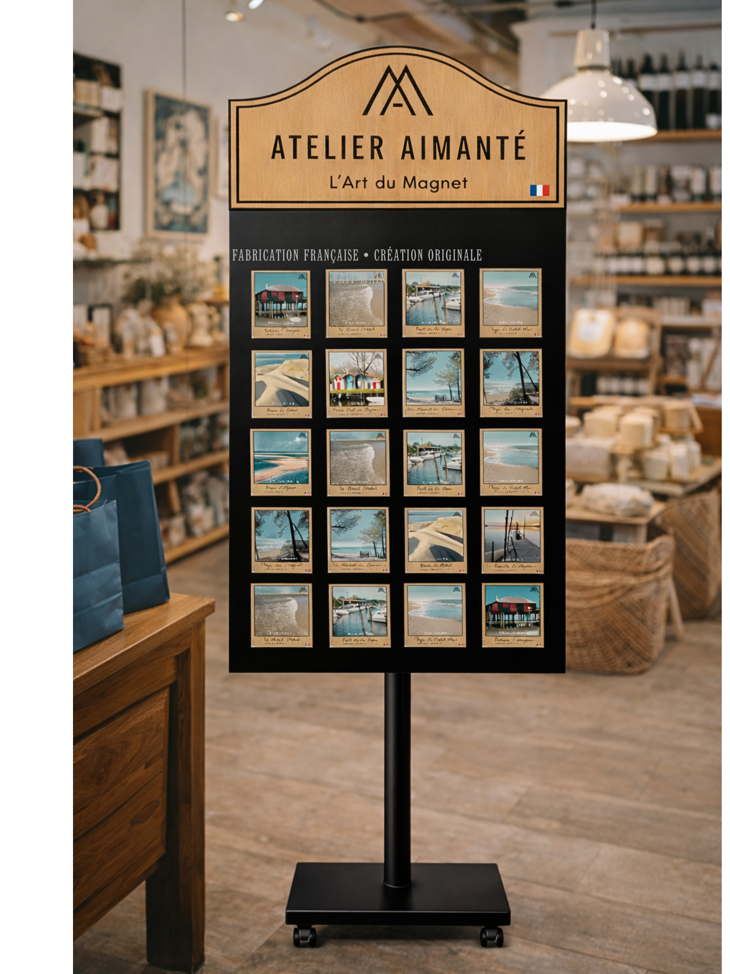 Nos magnets sont conçus pour s’intégrer naturellement dans les concept stores, boutiques touristiques, caves, épiceries fines, musées, offices de tourisme et espaces premium.
