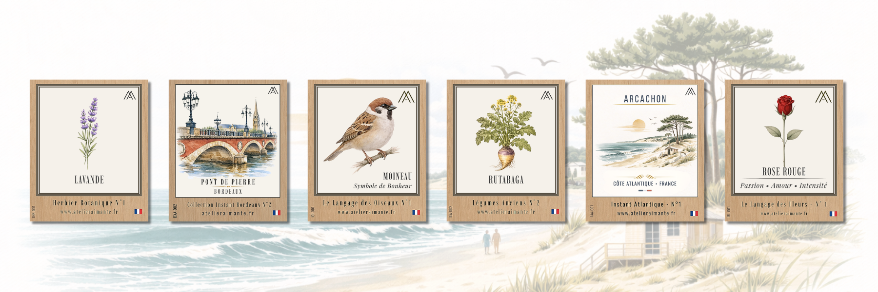 Magnets décoratifs premium fabriqués en France. Pensés pour la vente en boutique et l’achat d’impulsion.